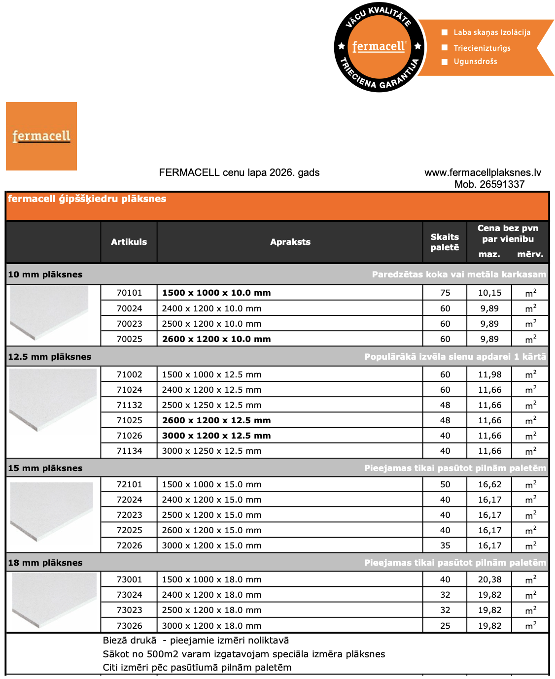 Universālas izturīgas plāksnes sienām un griestiem